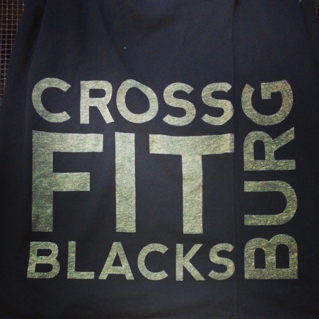 Crossfit Blacksburg waterbased discharge tshirts. Cool heathered result!