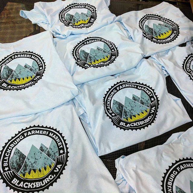 Blacksburg Farmers Market tees! Waterbased inks on super soft cotton! #screenprinting #waterbased #matsuicolor #blacksburgva #farmersmarket #farmtotable #buylocal #blacksburgfarmersmkt